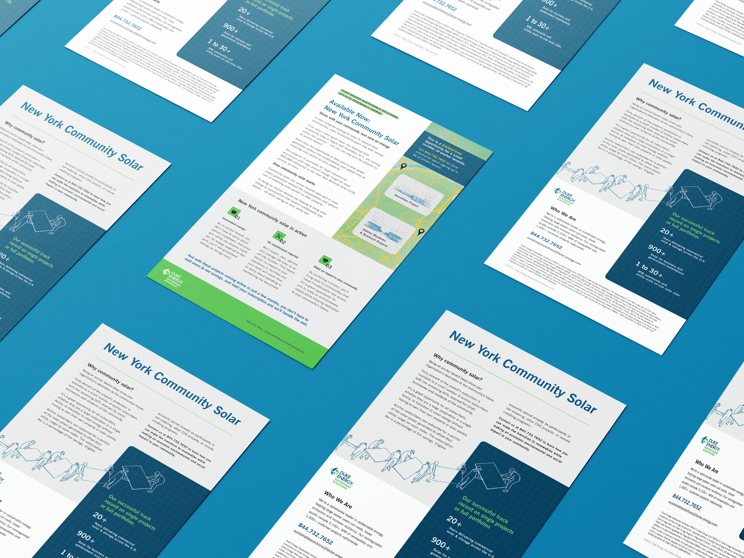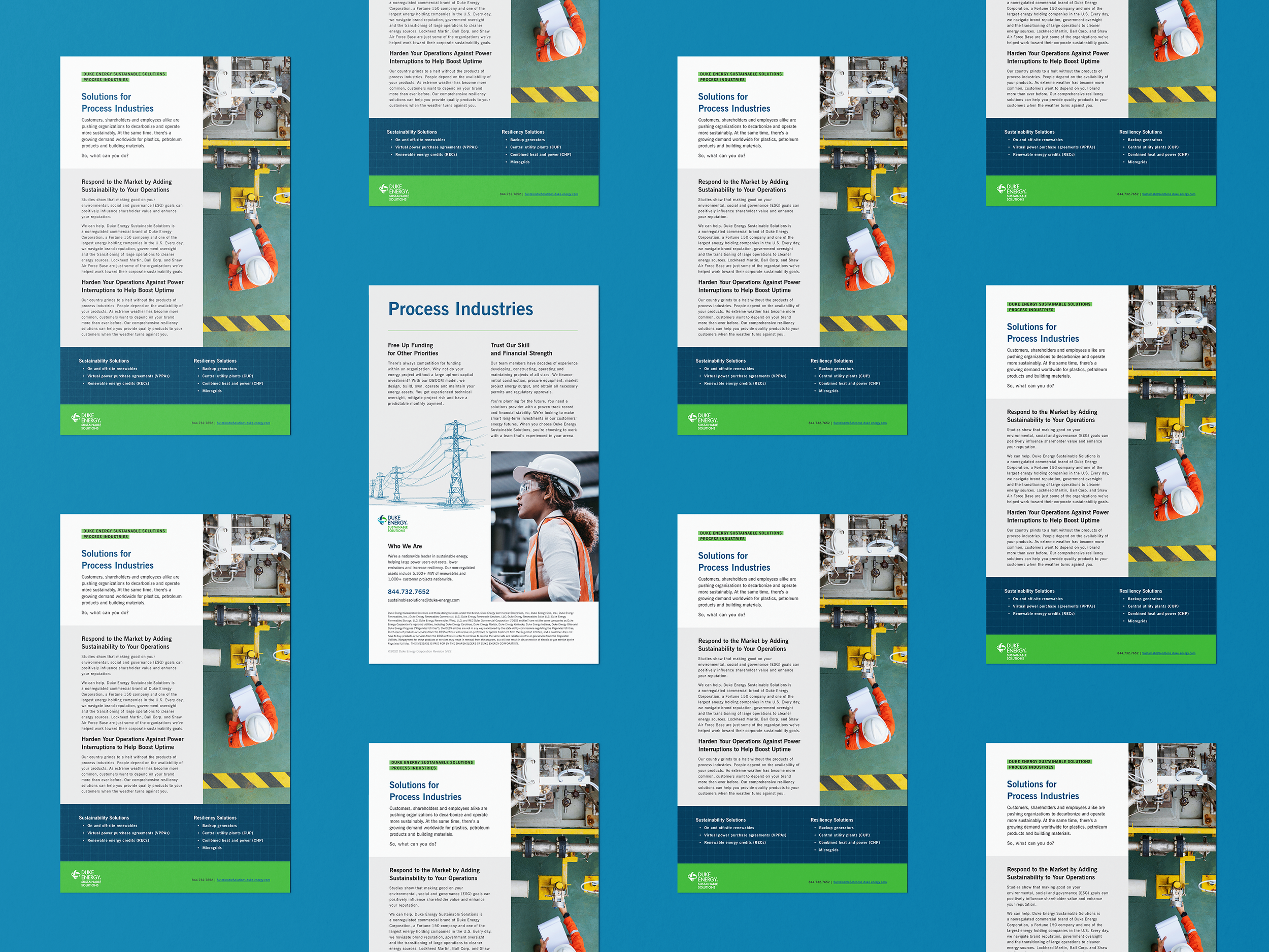 Duke Energy maintains tight brand control over all subsidiaries. Elements like the logo, type, and most of the palette were set in stone. Additional elements would require approval by the internal marketing and design group, who were used to moving at utility pace and were unfamiliar with renewable commercial sales.