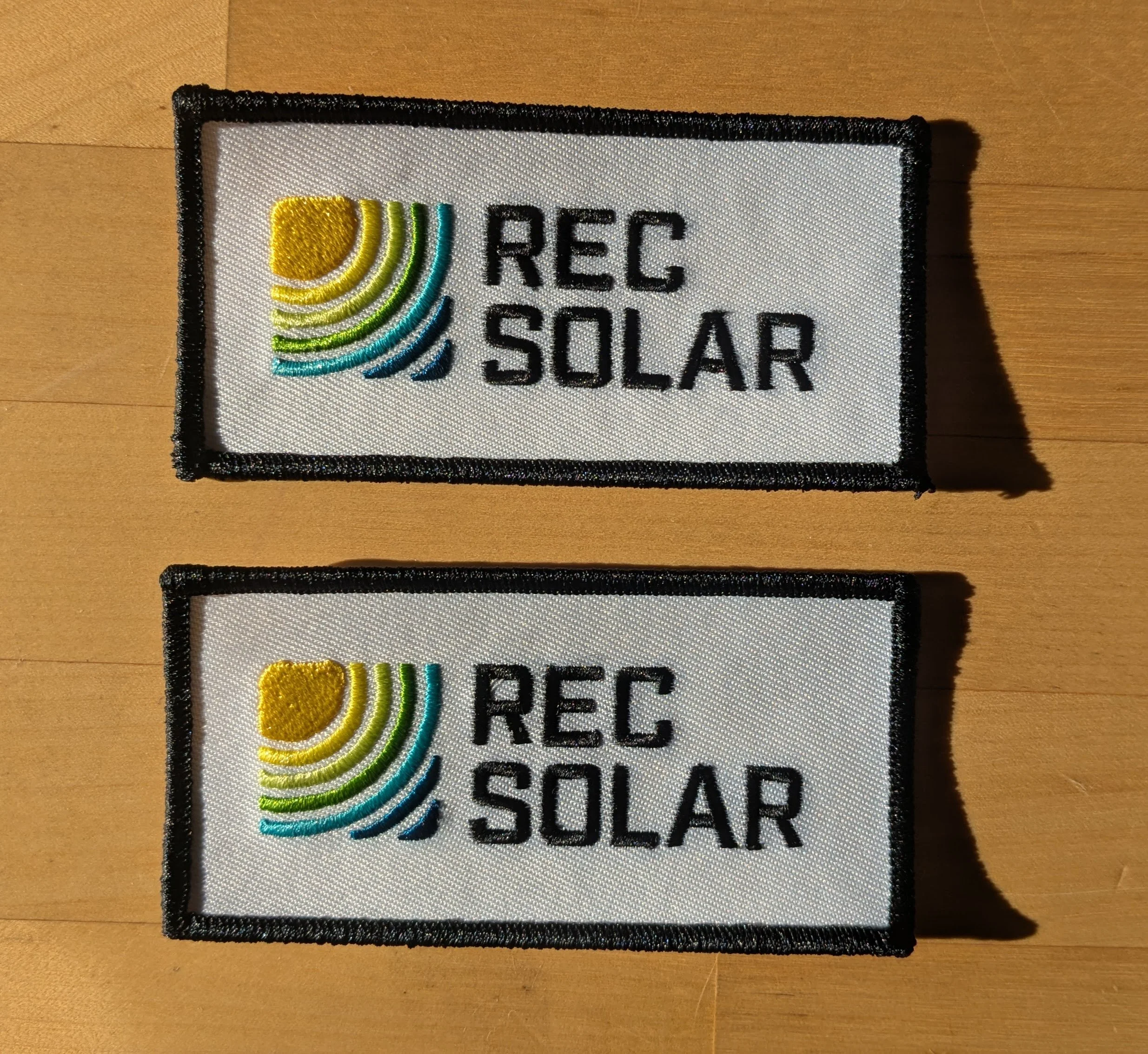 Many of the 45 employees who made the move to REC Solar 3.0 had been with the company for at least 5 years - which meant people already had their nice Patagonia jackets and vests. Knowing that it could be some time before REC Solar could reliably hit purchase minimums for the nicer swag items, I designed patches that could be applied to existing swag.